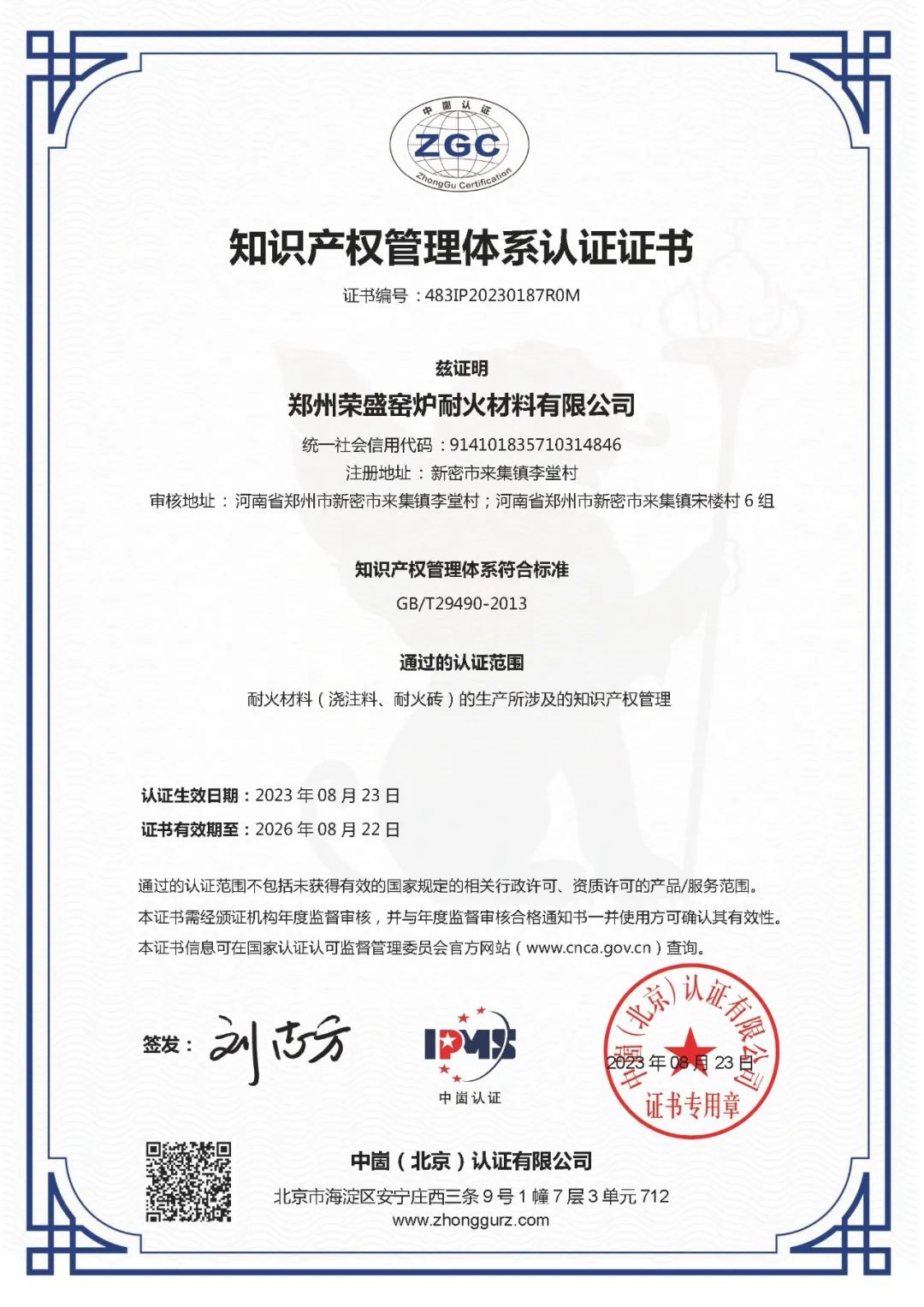 喜訊!榮盛耐材通過(guò)國家「知識產(chǎn)權管理體系認證」!
