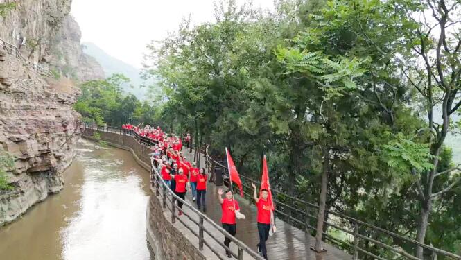 隨后,大家沿著(zhù)紅飄帶來(lái)到了紅旗渠總干渠的咽喉工程——青年洞,通過(guò)聽(tīng)講解、觀(guān)實(shí)物、看實(shí)景、走長(cháng)渠等,切身實(shí)地感受紅旗渠精神的深刻內涵。走在半個(gè)世紀前完工的紅旗渠邊,山壁上的一幅幅題字、一幕幕修渠場(chǎng)景次第呈現,每個(gè)人都不禁感嘆先輩們“自力更生、艱苦創(chuàng )業(yè)、團結協(xié)作、無(wú)私奉獻”的紅旗渠精神。通過(guò)實(shí)地的觀(guān)摩和學(xué)習,大家真切地感受到了林州人民創(chuàng )業(yè)的艱苦,加深了對紅旗渠精神的認識和理解,也更加堅定了傳承和發(fā)揚這一精神的信念。