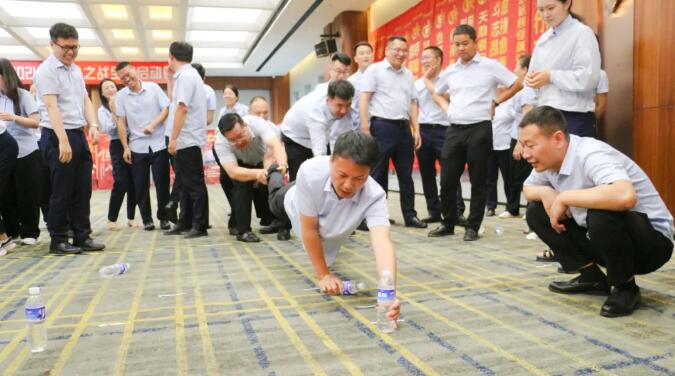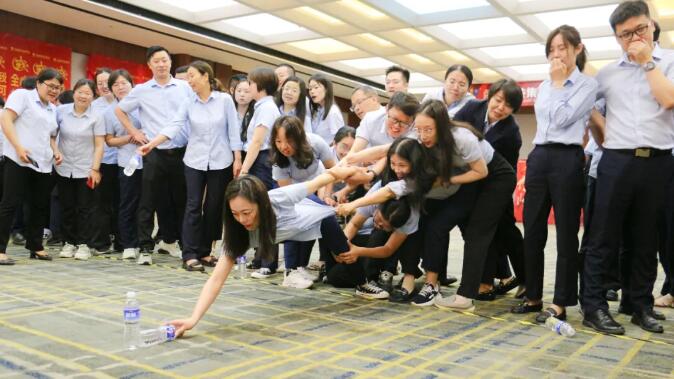 【勇創(chuàng )新高】環(huán)節,主要內容是計時(shí)30分鐘的水瓶挑戰。一聲哨響之后,各個(gè)戰隊立即展開(kāi)智力和團隊協(xié)作力的大比拼,一次次挑戰自我,一次次超越自我,在嘗試中不斷打開(kāi)思維,開(kāi)放心態(tài),學(xué)習更優(yōu)模式以期實(shí)現目標。同時(shí)大家還能迅速找到自己的優(yōu)劣勢,揚長(cháng)避短,團結協(xié)作,終發(fā)揮出的團隊力量,達成各自隊伍的目標。